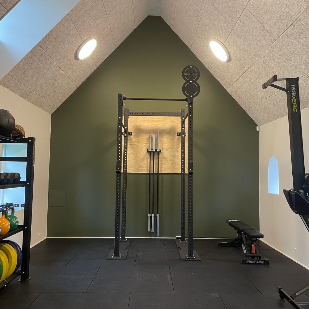 Formålet med løsningen var ikke blot at etablere et træningsrum, men at skabe et funktionelt home gym, der kunne dække størstedelen af kundens træningsbehov. Træningen i CrossFit-boxen skulle fortsat være en del af hverdagen, men home gym’et skulle gøre det muligt at vedligeholde styrke, kondition og teknik på egne præmisser.