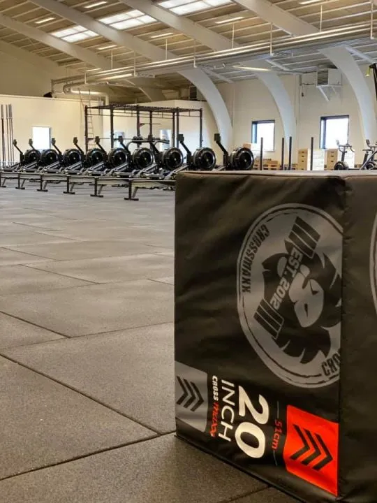 Stor crossfit box med alt det nødvendige udstyr.