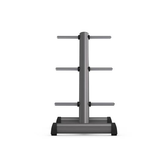 De solide vægtpinde er placeret, så skiverne holdes stabilt og organiseret efter størrelse. Det giver et ryddeligt og professionelt udtryk – noget der er afgørende i moderne fitnesscentre, hvor både funktion og visuel præsentation spiller en vigtig rolle.