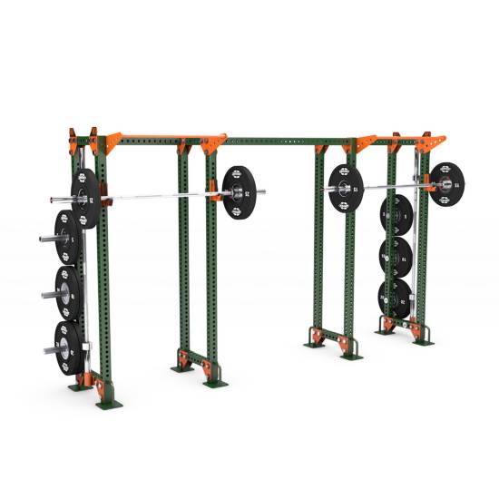 Den smalle profil gør Narrow Rack Double særligt velegnet til faciliteter, hvor pladsudnyttelse er afgørende. Trods det kompakte design leverer rammen ekstrem stabilitet og sikkerhed – selv ved tunge squats, bænkpres og rack pulls.