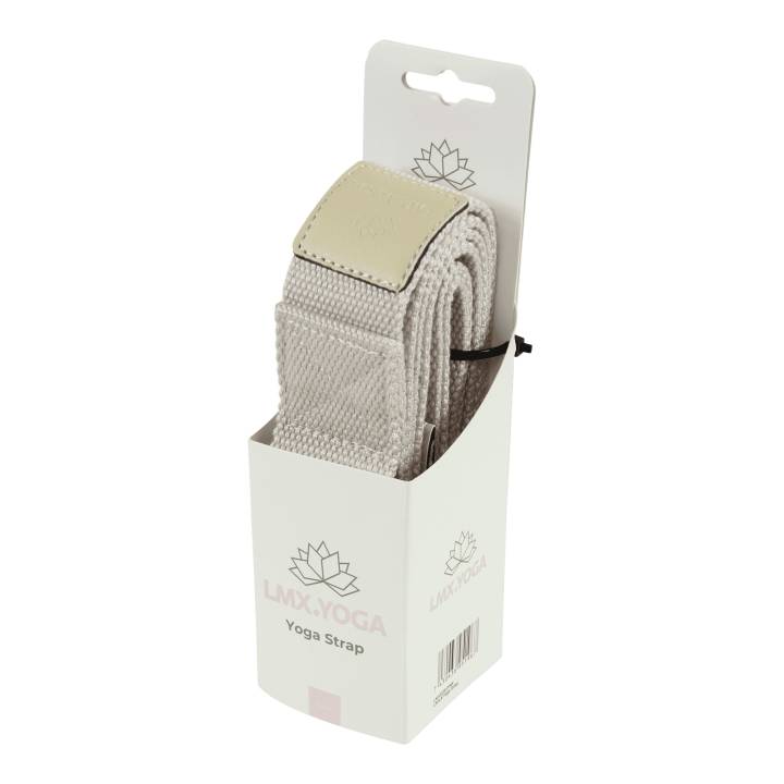 Strop til yogatræning, som assisterer ved udførelse af diverse yogaøvelser og er skadesforebyggende. Længden er justérbar og kan tilpasses forskellige niveauer.