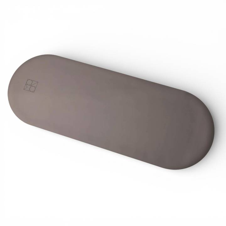 Det karakteristiske halvmåne-design tilfører måtten et roligt og elegant udtryk, der inviterer til nærvær og fokus på bevægelse og åndedræt.