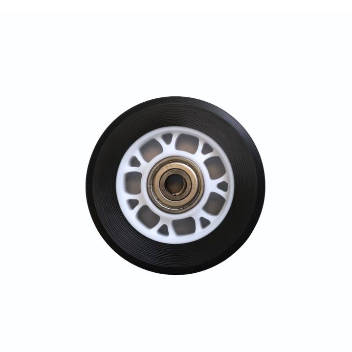 Hjulet er fremstillet i slidstærkt plast med gummibelægning og indbygget kugleleje, som reducerer støj og friktion. Det er bygget til at modstå gentagen belastning – både i kommercielle studier og hjemmetræningsmiljøer.